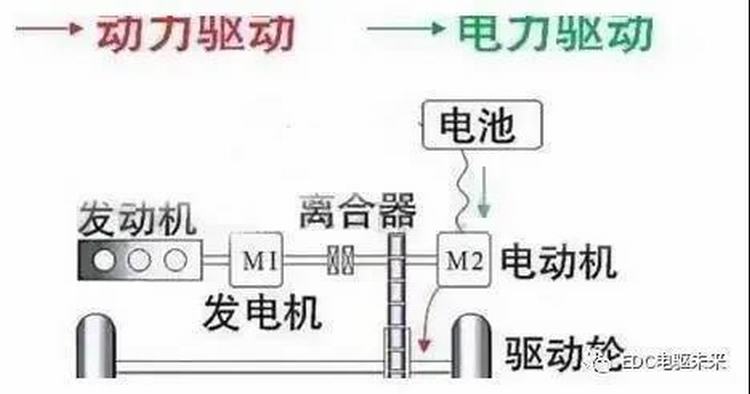 ECVT的内部结构包括两台电动机,一台为发电电机,另一台为驱动电机。其中发电电机与内燃机串联并控制一个档位(1挡),其主要运行模式为纯电行驶中电池亏电时,由内燃机驱动发电机发电并为电池组充电,实现所谓的行车发电增程纯电驾驶模式;而在高速巡航和急加速时由于电耗过高,仅依靠小功率的发电机则无法满足电耗,此时则需要内燃机结合离合器以一个档位辅助输出动力驱动车辆行驶。内燃式发动机只有一个档位,这种结构很显然会费油且降低NVH水平,不过装备ECVT的量产车也没有那么差,这是通过什么技术手段实现的呢?请看下图。
