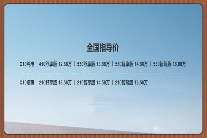 零跑C10车型分为增程动力和纯电动两种动力系统,增程动力版本纯电续航里程最低可达210km,纯电动版本续航更长,最低也是410km起步。