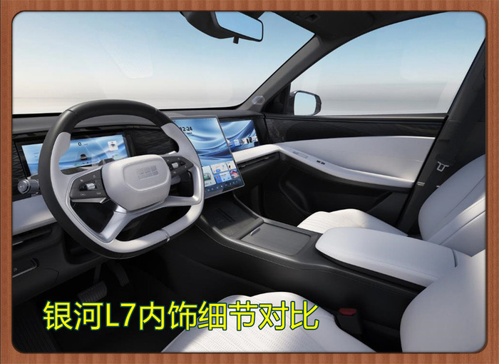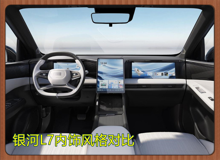 银河L7在内饰设计方面,同样是时尚而又充满了科技感。内饰不仅在设计风格上非常讲究,在配色上也非常讲究,双拼色内饰、四幅多功能方向盘、中控、主驾驶、副驾驶三块大屏幕,瞬间让整个内饰的科技感拉满,看起来温馨又科技时。