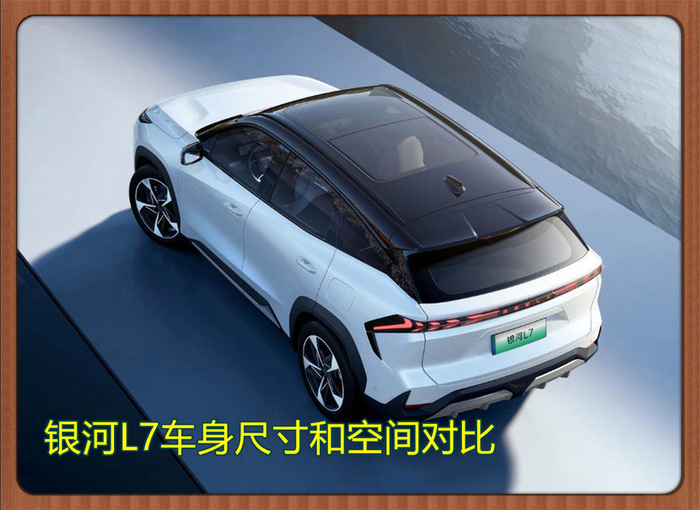 银河L7定位紧凑型SUV,它的长宽高尺寸分别为4700*1905*1685mm,轴距为2785mm,同样采用了5座设计,内部的乘坐空间和储物空间表现也不错。