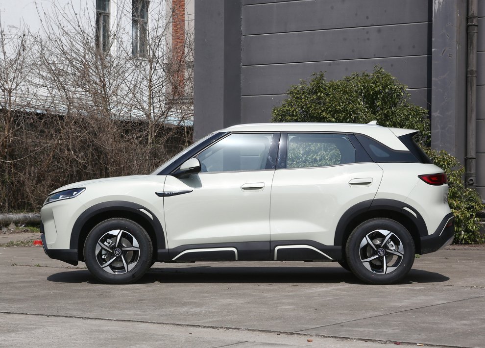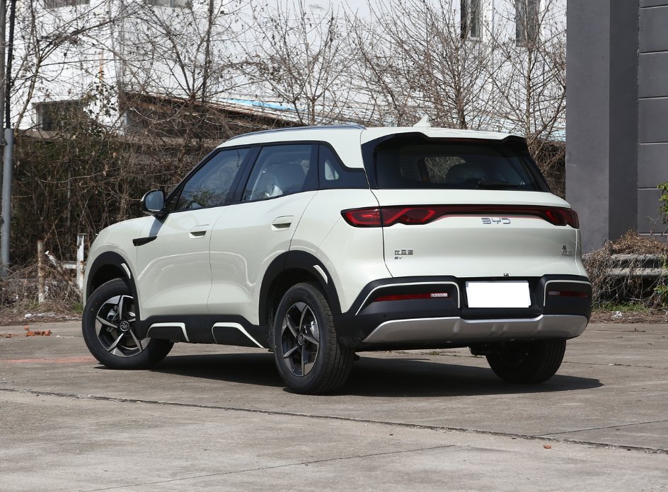 车身侧面,比亚迪元UP的视觉效果就比较紧凑小巧了,这也符合我们对小型SUV的印象。车顶能够看到平直的线条走势,还做到前高后低,带有明显的下滑。同时车顶和D柱的上半部分与车身同色,A/B/C柱和D柱的下半部分采用黑色,形成悬浮式车顶,让车身看起来富有动感。门把手采用半隐藏式设计,兼顾成本的同时,也能增加车侧科技感,降低风阻系数。车尾配备贯穿式的灯组,后保险杠的上方也加入了白色装饰条,造型和车头形成了呼应。