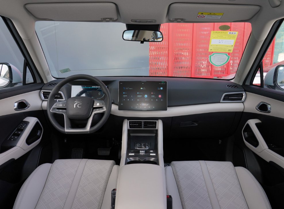 内饰方面,比亚迪元UP有很浓郁的比亚迪家族风格,采用12.8英寸中控大屏+8.8英寸液晶仪表,中控台上并没有太多的实体按键,营造出较为简约时尚的既视感。车内的挡把也和一般的车型不同,表面融入水晶材质,造型也比较宽大。需要注意的是,挡把附近的按键都采用中文标识,查看按键功能时会更直观。